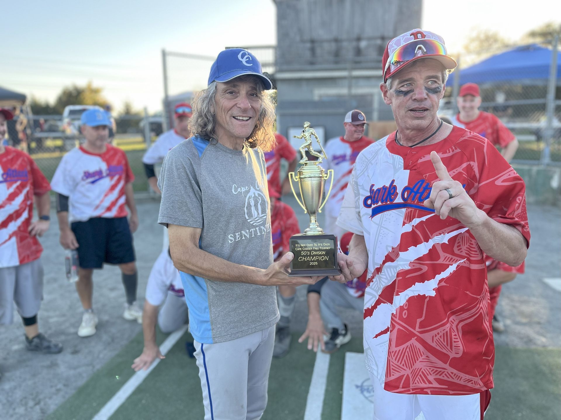 Congrats to Cape Cod Shark Attack 50s for winning It Ain't Over Til Its Over Cape Codgers Inaugural Soft Ball Tournament held Saturday and Sunday Oct. 4 and 5 in Falmouth MA.