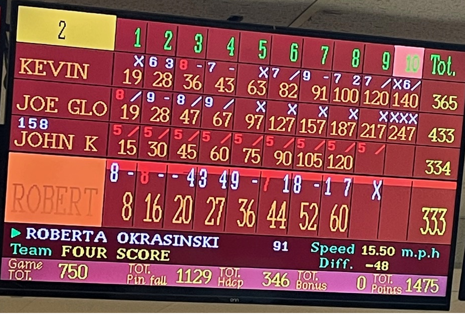 At a recent Codger 10 Pin Bowling day, 2 time defending Home Run Derby Champ Joe Gloski showed that hitting home runs isn't his only skill. He rolled a score of 247, finishing the game with 8 straight strikes! What other sports do you play Joe?