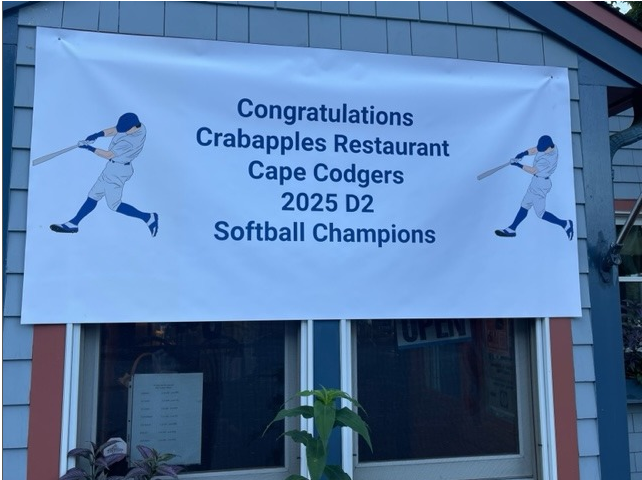 The 2024 Codger season ended on a sour note for the Crabapples Restaurant (CA) team and Coach Gary MacDonald. But after a great 2025 spring draft the CA team rolled right into the regular season and ripped off four straight victories on their way to capturing the league title with a stellar15-6 record. This secured Crabapples the number one seed in the playoffs where they took down NH Swain Builders by the score of 14-4. Meanwhile Falmouth Toyota secured the number two seed and they defeated East End Tap by the score of 19-11. In round two the Apples were shining bright as they dissected Mulcahy Family Chiropractic for a resounding 17-2 win. Toyota kept pace with CA as they battled it out with the On The Water team and came out on top, sinking OTW by the score of 15-11. Both Crabapples and Toyota were sitting pretty in the winner’s bracket with 2-0 records. The teams faced off on August 28 th with some high stakes; the winner would advance to the finals and the losing team would drop into the elimination bracket. It was a well-played game but it was Toyota who had their engine fine-tuned as they just cruised by Crabapples by the score of 11-8. Toyota got off to a great start in their big win as they scored five runs in the first. Leadoff hitter Peter Killelea started it with a double, Brian Faria and Mike Faria followed with singles. George Brennan had a double and Carl Milde finished off the 5-run inning with an RBI single. They increased their lead to 6-2 as John led off with a single and Tim Nolan moved him around with a hit. Peter Cahill also had an RBI single. They increased their lead to 8-2 in the third with a huge two out rally. Peter “K” singled, and then Brian and Mike Faria had RBI hits. Crabapples countered with four runs in the bottom of the 3 rd but Toyota got one back in the 4 th to make it a 9-6 score. In the bottom of the 6 th Crabapples cut the lead to 9-8. In the top of the 7 th Toyota got to important insurance runs to increase the lead to 11-8 on hits by John Muckstadt, Mike Faria and “Hutch” to close out the scoring and the game. Crabapples regrouped from that tough loss and slugged their way to a big win over On The Water, the score was 19-13 as both teams gave it their all. Crabapples win advanced them into the championship finals where they would face a tough task; to be the 2025 champs they would have to defeat Toyota twice to win the double elimination tourney.